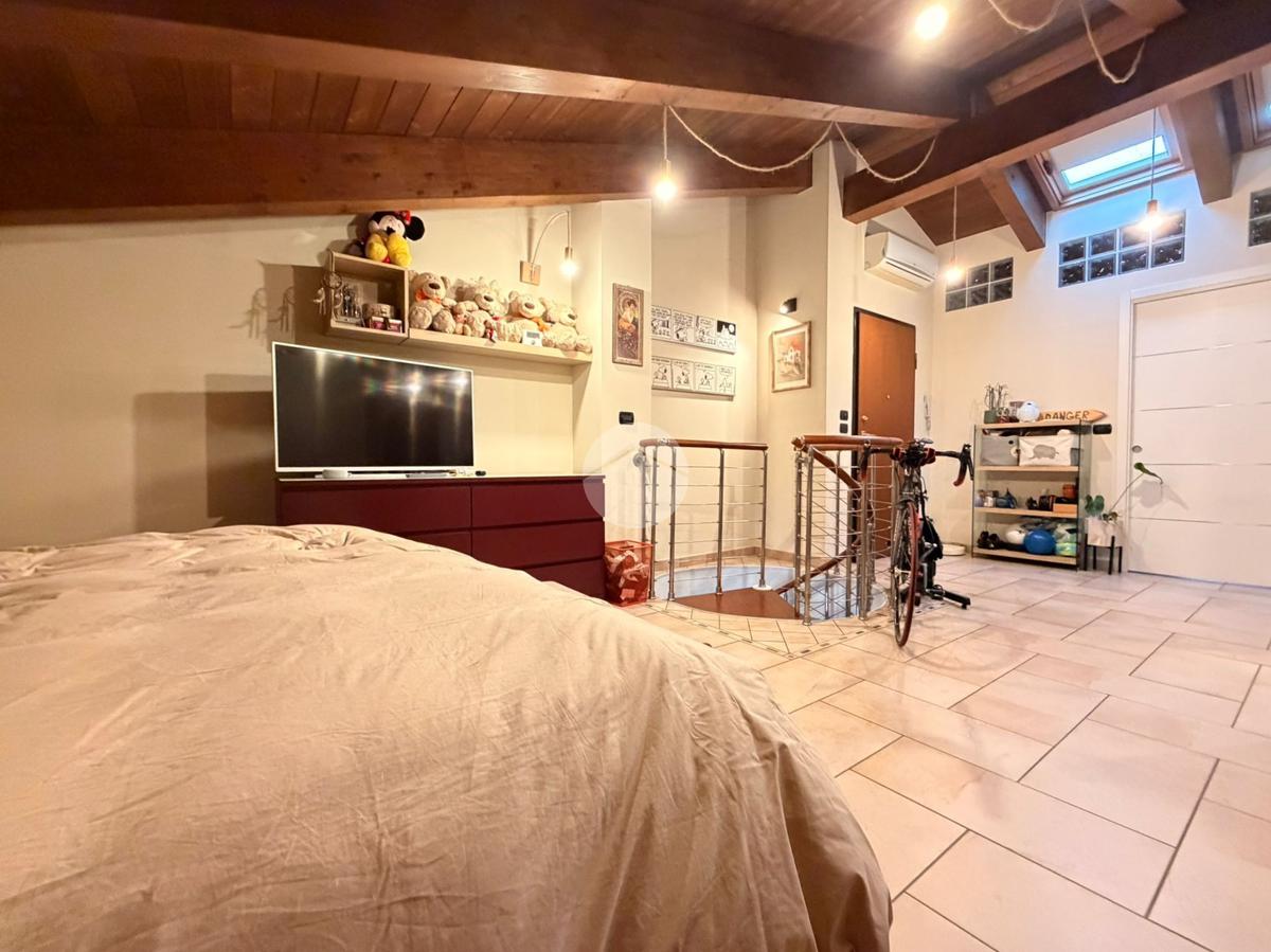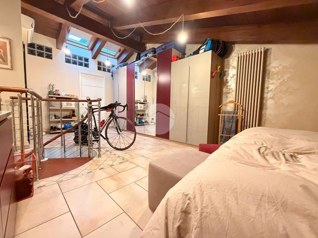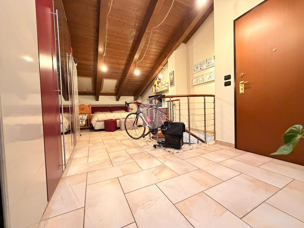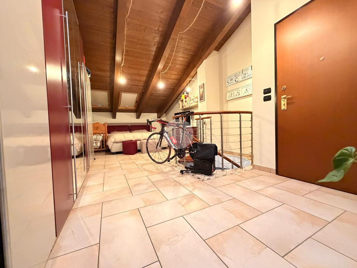 L’abitazione si sviluppa al piano principale con un ampio e luminoso soggiorno living con cucina a vista, una camera da letto, un bagno e due balconi che garantiscono ottima luminosità e piacevoli sfoghi esterni. Una scala interna accompagna al piano mansardato, caratterizzato da travi a vista che donano calore e charme agli ambienti.