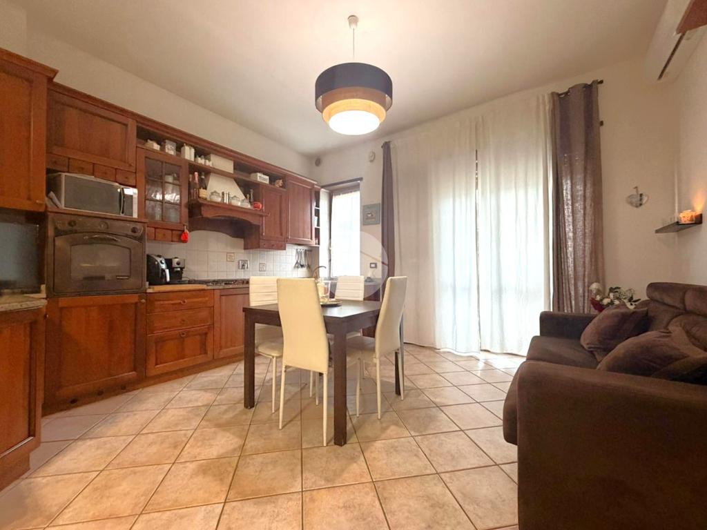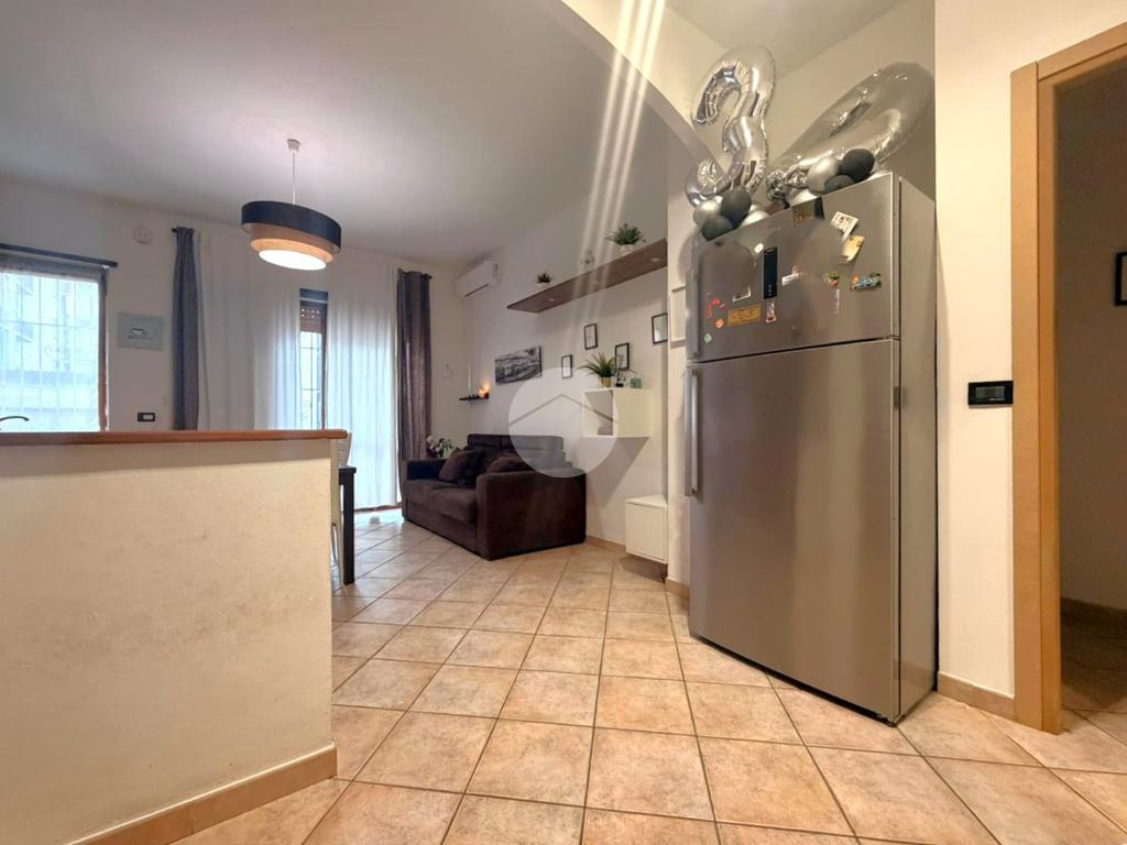 L’immobile accoglie con un ingresso living sulla zona giorno, un ambiente luminoso e ben organizzato, dove la cucina a vista si integra perfettamente con lo spazio dedicato al relax, creando un’atmosfera conviviale e funzionale.