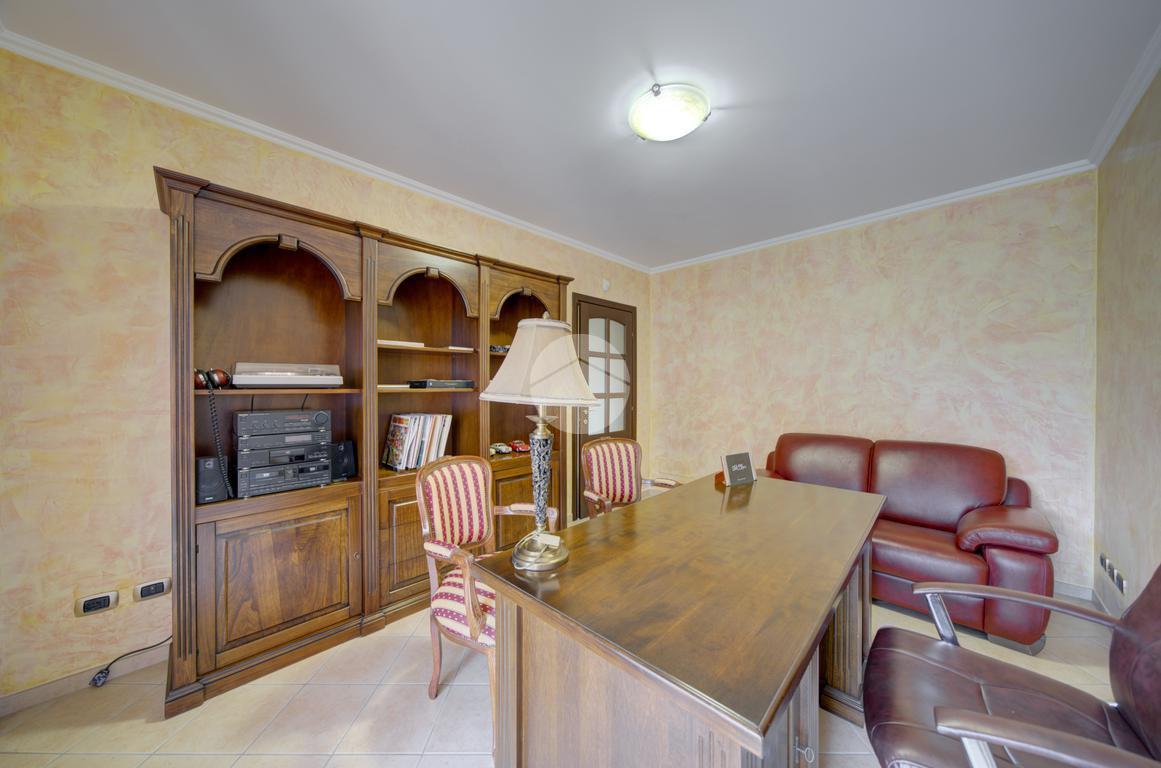 Esternamente, la villa gode di un giardino perfettamente curato sul fronte e di una zona terrazzata sul retro, ideale per pranzi all’aperto o momenti di relax. Gli infissi sono in alluminio effetto legno e l’immobile è dotato di impianto di antifurto.