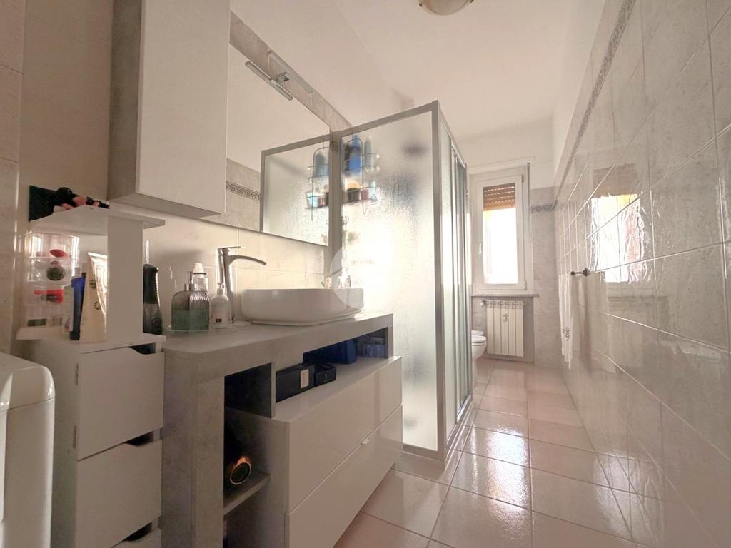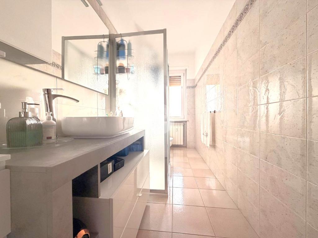 Il bagno finestrato, moderno e curato, è dotato di box doccia. L’appartamento si trova al primo piano, servito da ascensore, garantendo tranquillità e ottima luminosità.